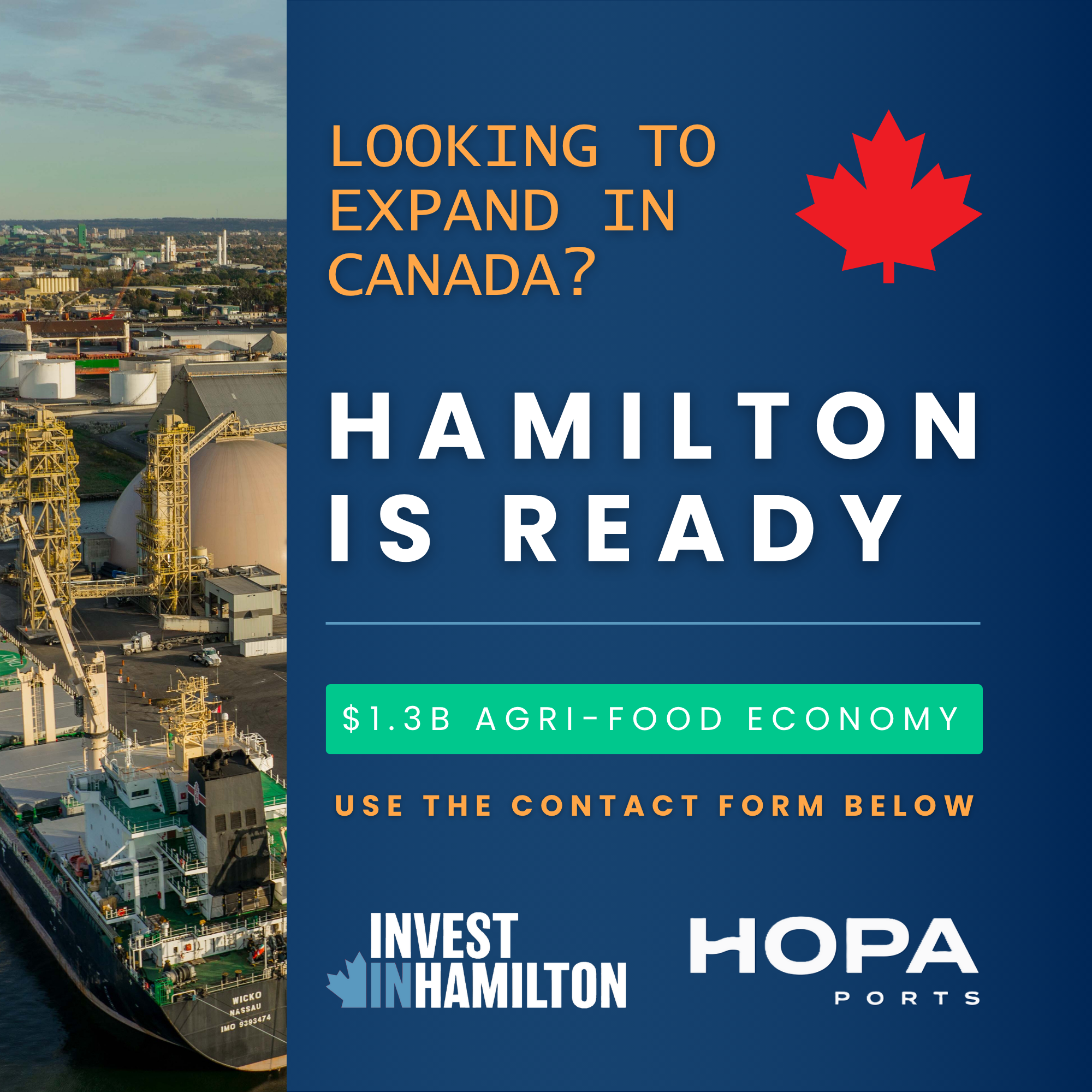 Hamilton, Ontario, is a rapidly growing centre for agri-food innovation, processing, and logistics—home to a robust supply chain, a skilled workforce, and direct access to international markets via HOPA Ports. With a strong foundation in food manufacturing and a collaborative ecosystem that supports growth, Hamilton offers a strategic location for companies looking to expand in North America. Whether you’re scaling production, exploring new partnerships, or seeking a launchpad for innovation, Hamilton is ready to support your success.